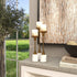 •This decorative candle holder set is crafted from reflective aluminum and naturally textured marble, creating a stunning visual contrast