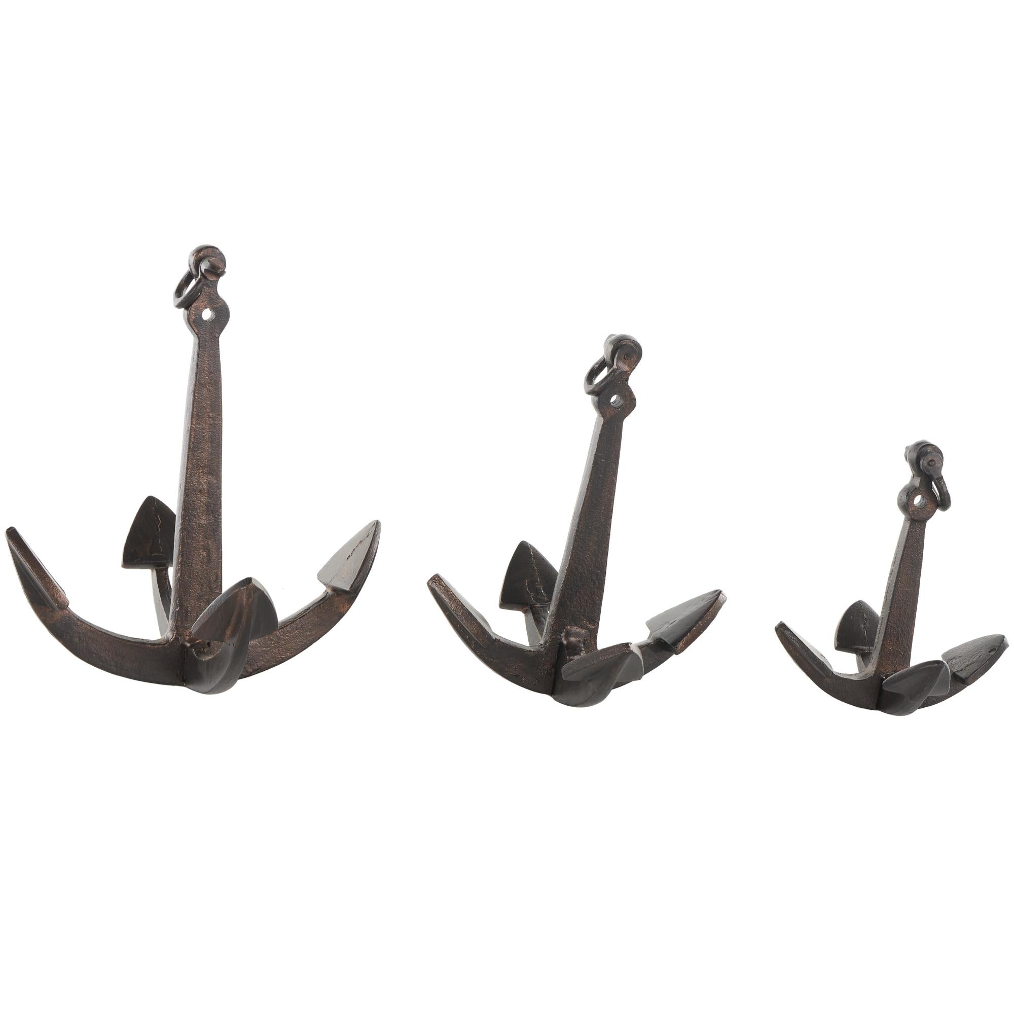 Set of 3 Anchor Copper Aluminum Metal Weathered Decorative Sculpture with Hanging Hook