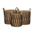 Use this set of 3 basket organizers as hampers or storage containers for a chic complement to your Bohemian home space interior design. This item ships in 1 carton. Due to the handmade nature of these, there will be slight color, shape, and size variations, as well as loose fibers. Suitable for indoor use only. This item ships fully assembled in one piece. Maximum weight limit is 5 lbs. Made in Indonesia. This banana leaf basket organizer comes as a set of 3. Bohemian style.