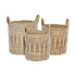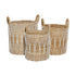 •This bohemian set of 3 basket for decor is crafted with banana leaf fibers intricately woven with attached handles and woven string accents all over the exterior