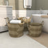 •This seagrass set of 3 storage baskets features intertwined plant fibers forming wide cylinder receptacles, offering durability and style
