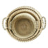 •The textured basket for home decor showcases a round shape accented by and plastic threads forming a geometric pattern, adding subtle yet striking details