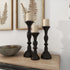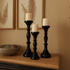 Set of 3 Black Mango Wood Decorative Candle Holder