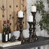 •Elegantly hand-carved from natural mango wood and iron, this decorative candle holder set exudes sophistication