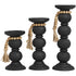 Set of 3 Black Wood Handmade Bubble Inspired Matte Decorative Candle Holder with Beaded Garland Accent