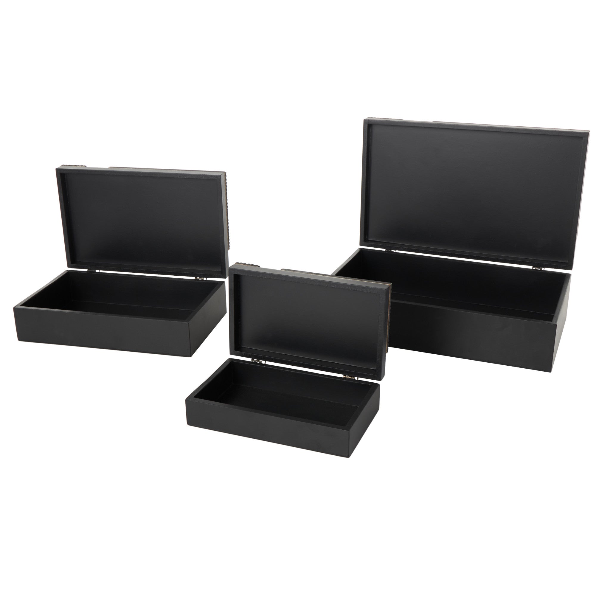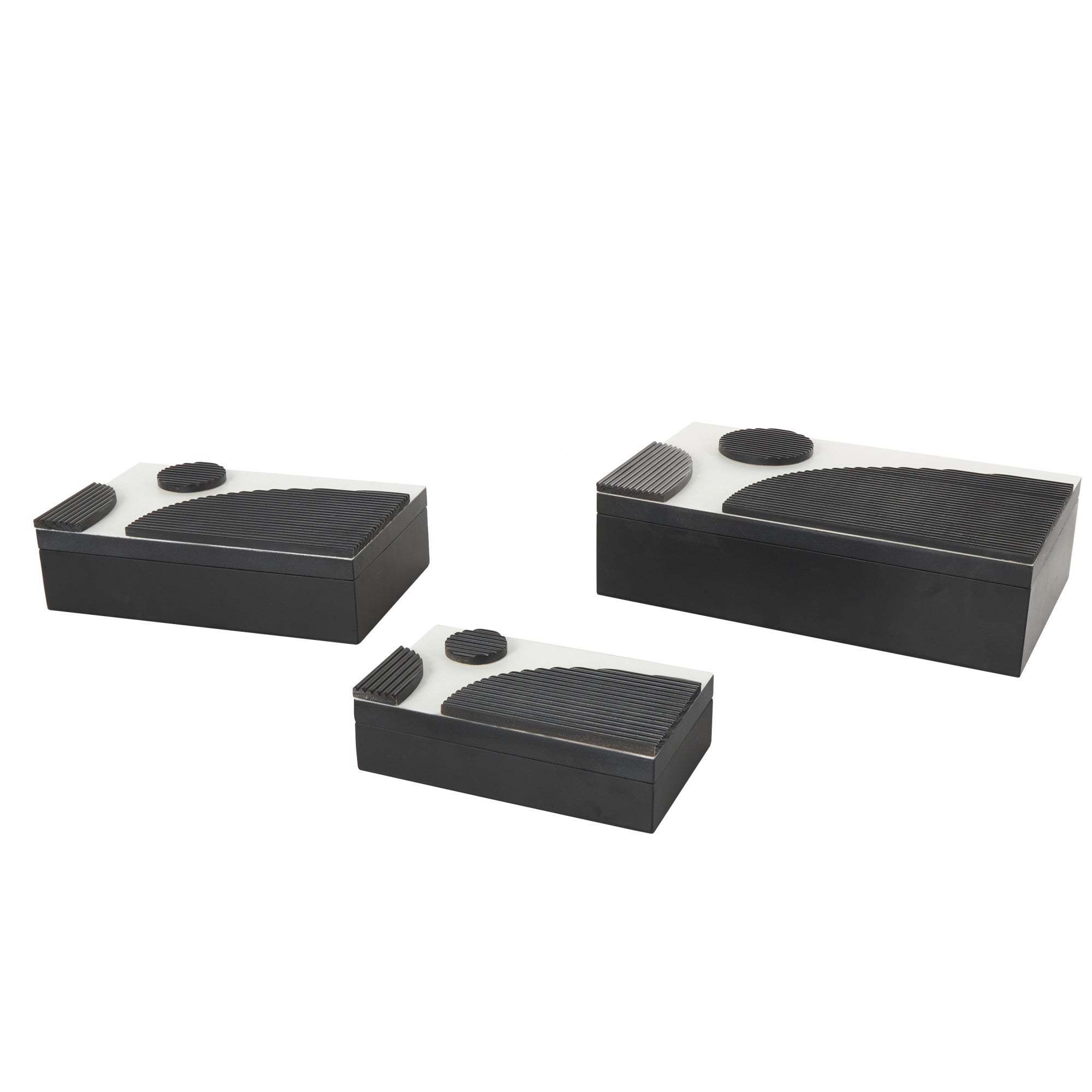 Set of 3 Black Wood Handmade Decorative Box with 3D Geometric Accents