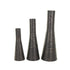 Set of 3 Bronze Metal Ribbed Tall Cone Floor Decorative Vase with Horizontal Grooves