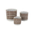 Set of 3 Brown Ceramic Polka Dot and Linear Patterned Indoor Outdoor Planter with White Accents and Base Tray