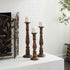 Set of 3 Brown Mango Wood Tall Turned Decorative Candle Holder