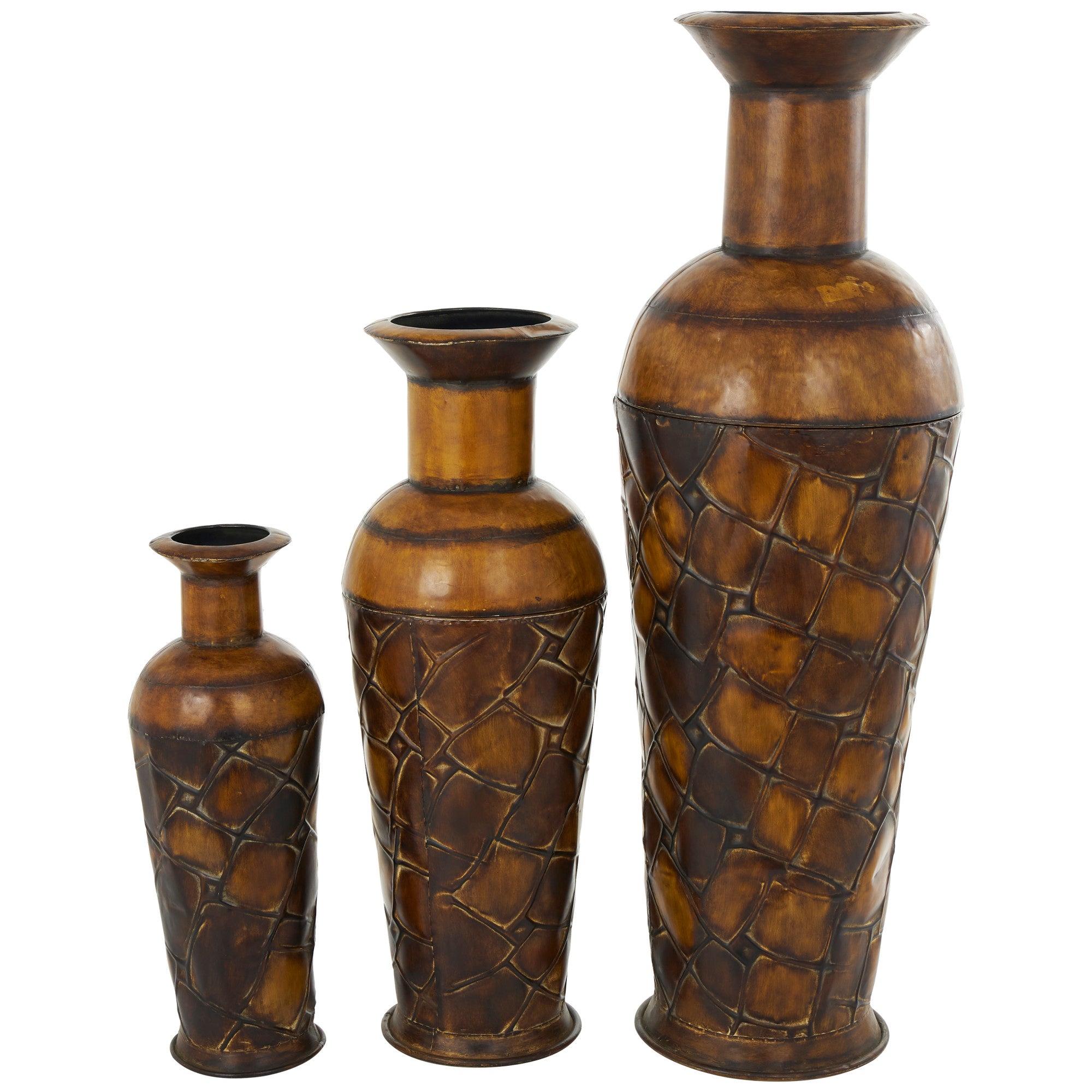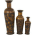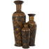 Set of 3 Brown Metal Indoor Outdoor Tall Floor Bottleneck Decorative Vase with Tortoise Shell Pattern