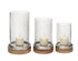 Set of 3 Brown Wood Pillar Room Hurricane Lamp with Glass Candle Holders