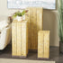 •Each wood pedestal table measures 9L x 9W x 22H , 12L x 12W x 30H , 15L x 15W x 39H inches, and collectively weighs 52.2 lbs