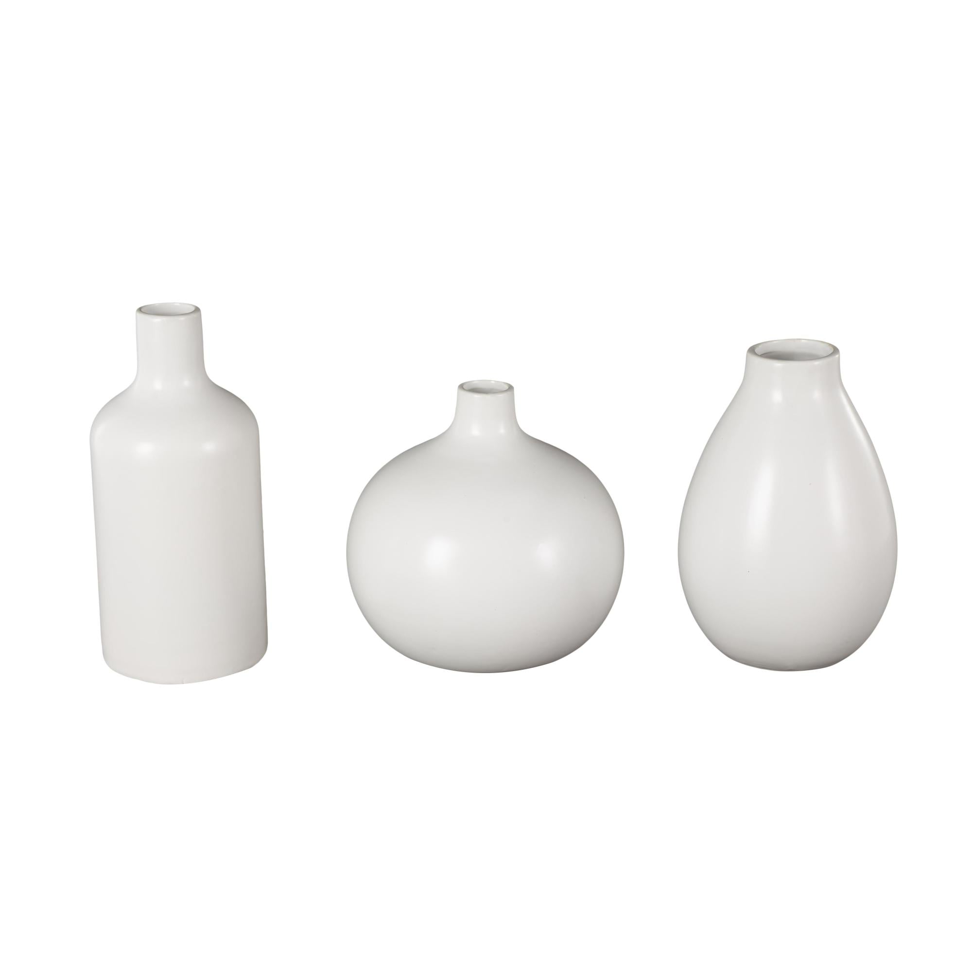This set of 3 centerpiece vases can be used as focal points in your living room, dining area, or even in your office for an added touch of style. Designed with felt or rubber stoppers at the base that prevent scratching furniture and table tops, as well as sliding around. This item ships in 1 carton. Suitable for indoor use only. This item ships fully assembled in one piece. This ceramic vase comes as a set of 3. Modern style. Vases have 1.70 in, 1.20 in, and 1 in mouth openings.