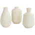 •The ceramic set of 3 vases showcases varying shapes for a minimalistic aesthetic