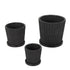 •This ceramic set of 3 plant pots features an attached saucer and a ribbed design for added visual interest