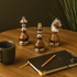 •Shiny home decor figurines are shaped like the knight, king, and queen of a chess set, creating an interesting play of light and shadow while contributing to their traditional charm