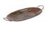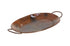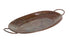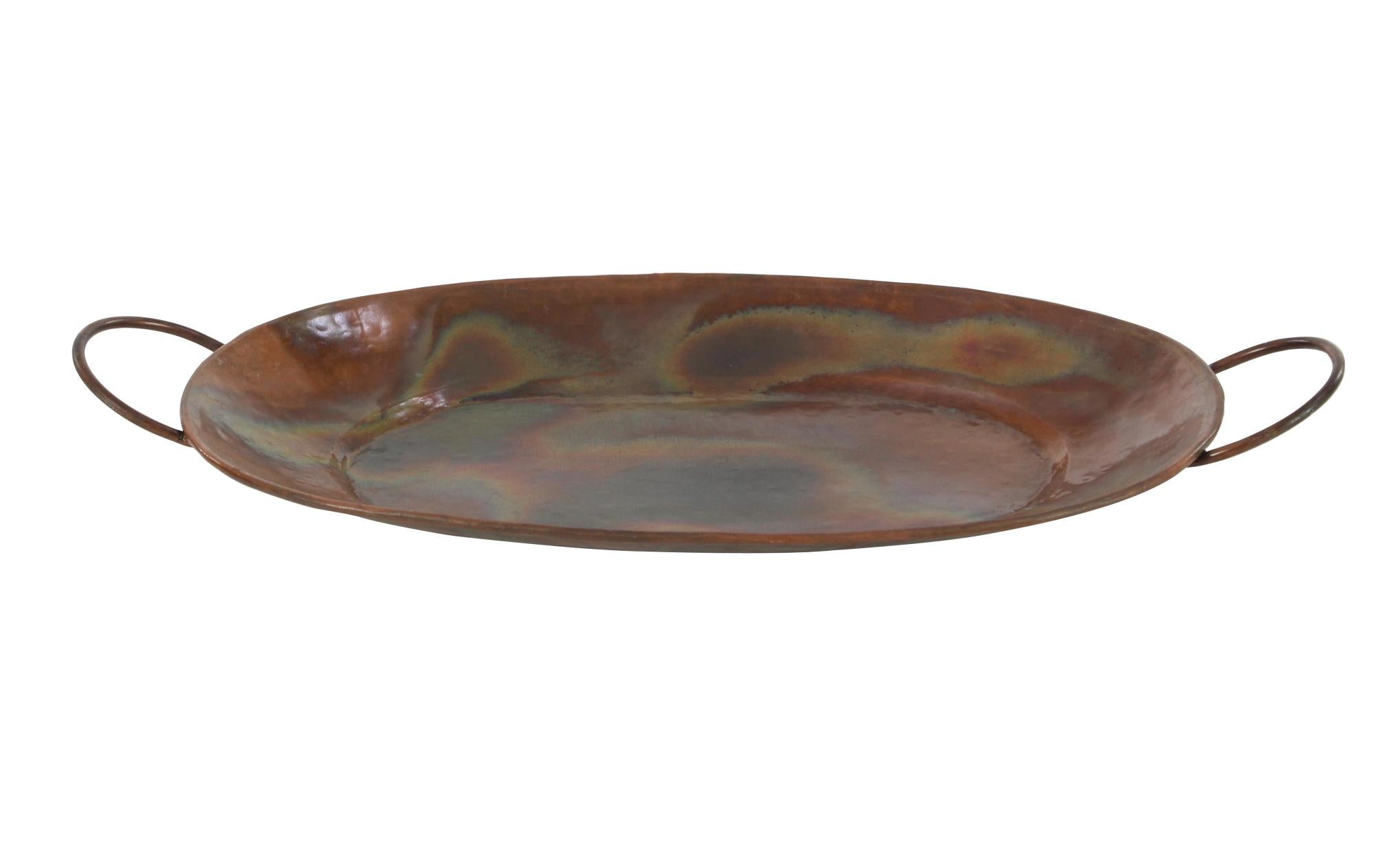 •Weathered copper storage tray showcases an elongated oval shape with handles and a hammered metal exterior for added visual appeal