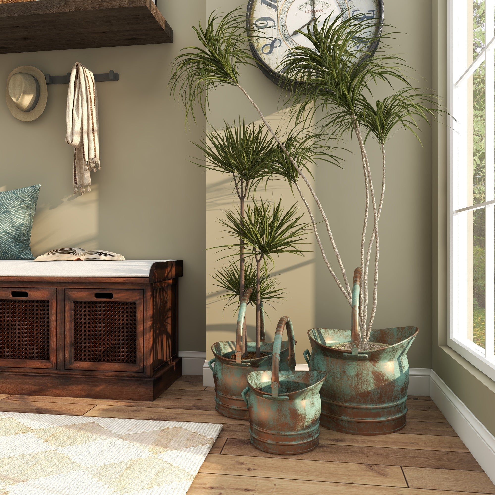 Set of 3 Copper Metal Patina Tulip Style Bucket Indoor Outdoor Planter with Stationary Handles