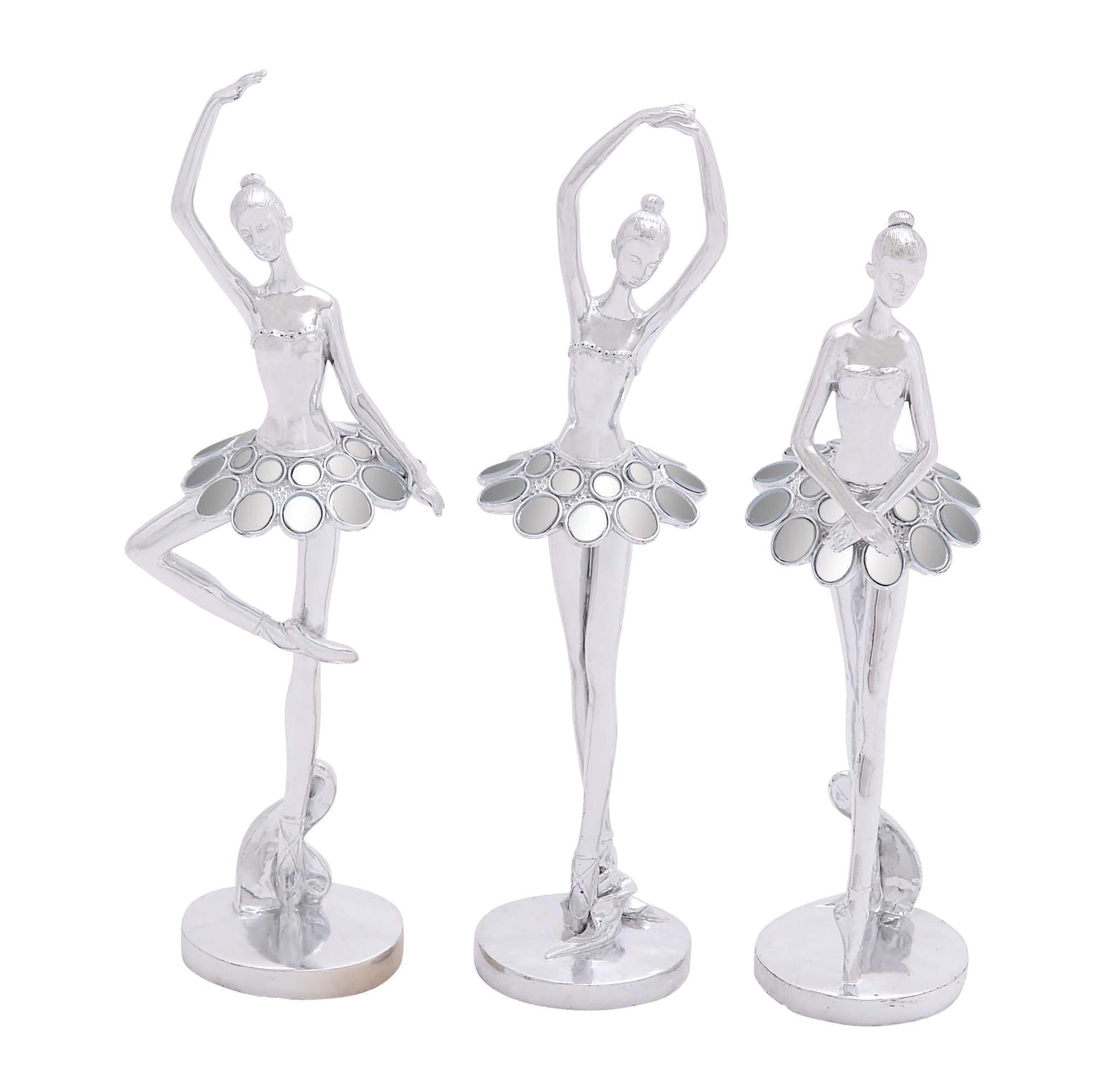 Create a balance surface space and added dimensions with this beautifully crafted sculpture. An artistic display to showcase your personality and enhance the look of any open table top space. Arrange this dancer set of 3 home decor statues together or separately on an accent table or mantel, paired with a plant and neutral books. Designed with felt or rubber stoppers at the base that prevent scratching furniture and table tops, as well as sliding around. This item ships in 1 carton. Please note that this item is for decorative use only. Polystone sculpture makes a great gift for any occasion. Suitable for indoor use only. This item ships fully assembled in one piece. This polystone statue comes as a set of 3. Glam style.