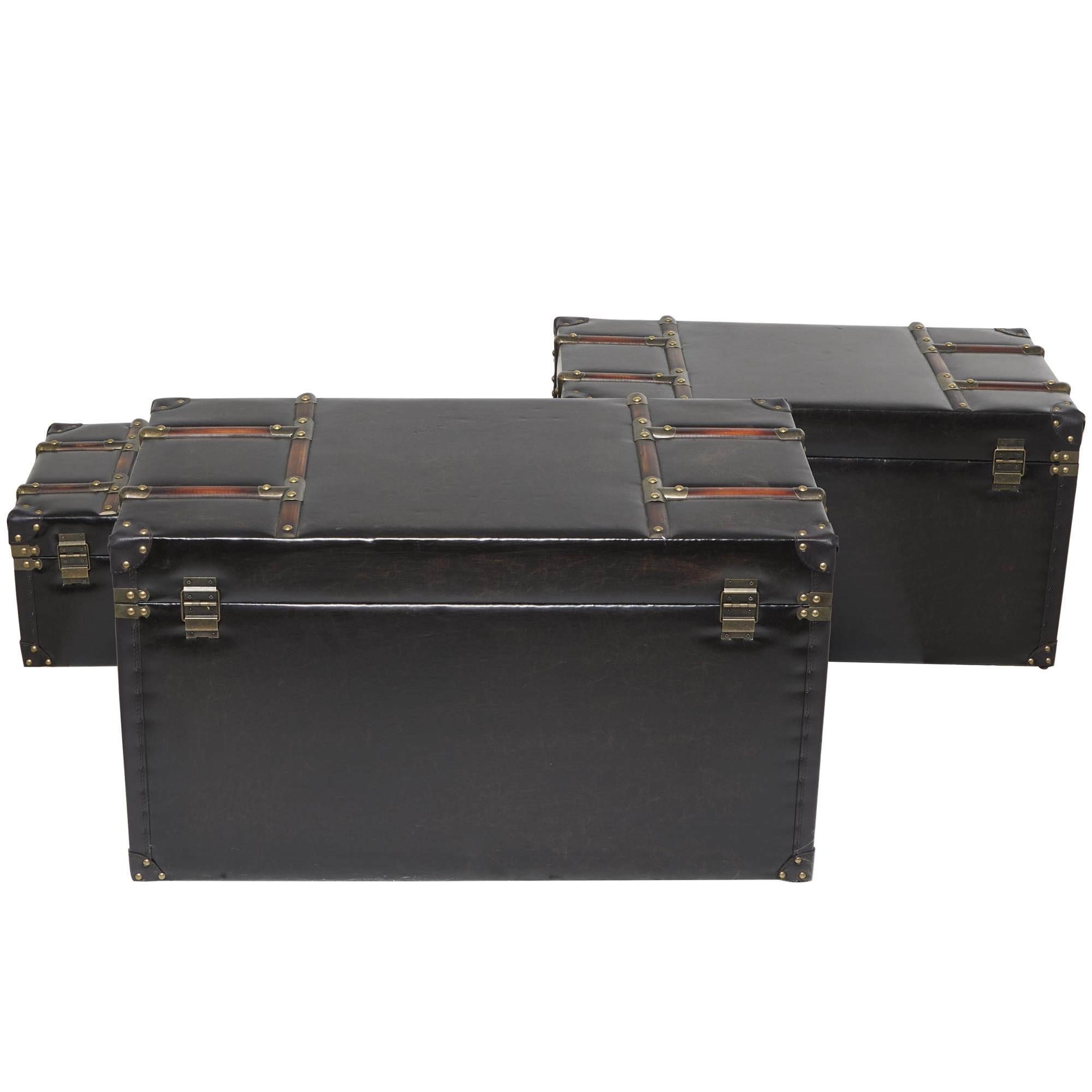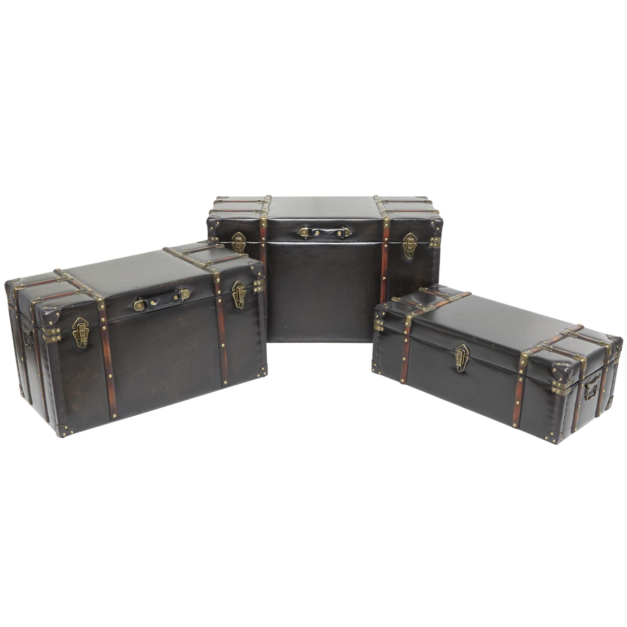 A perfect way to add depth and texture to your home while providing extra storage. Jazz up any space with these charming home decor accent pieces that are ideal for any style of home. Ideal for traditional-styled spaces, this set of 3 decorative large boxes can be stacked together or displayed separately to serve both decorative and functional purposes. This item ships in 1 carton. Suitable for indoor use only. This item ships fully assembled in one piece. Maximum weight limit is 50 lbs. This faux leather storage trunk comes as a set of 3. Traditional style.