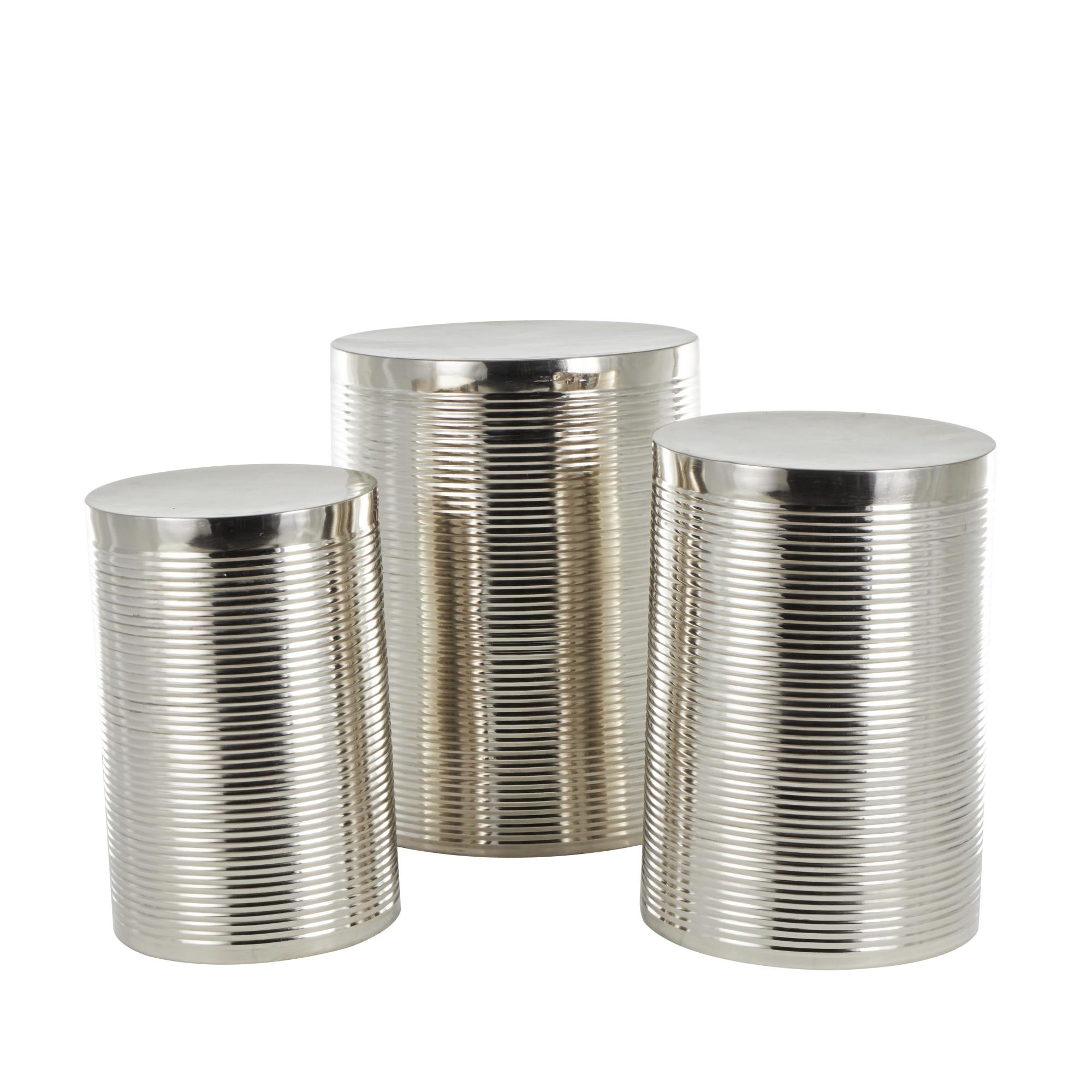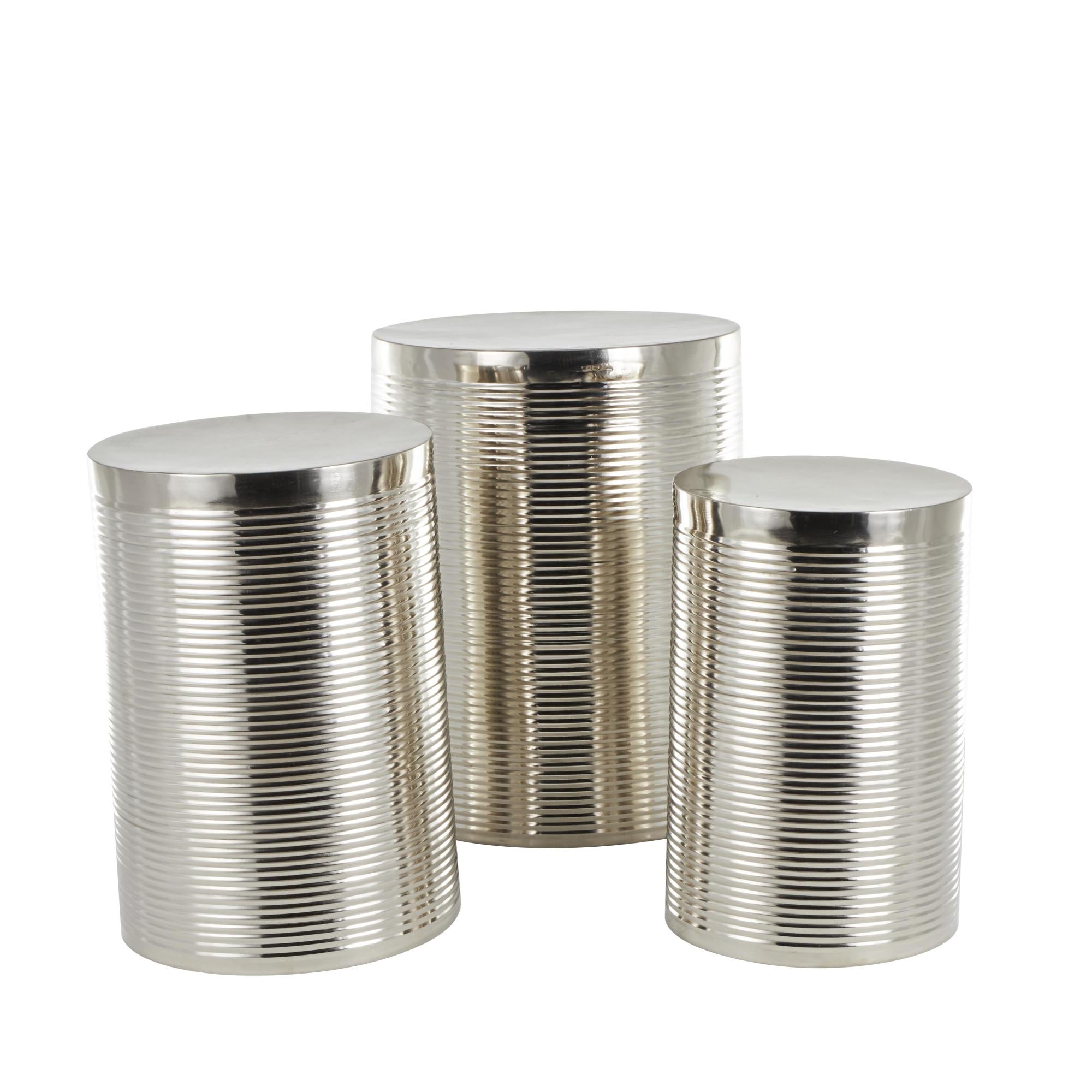 Set of 3 Metal Ribbed Drum Side End Accent Table Set of 3 24", 22", 20"H