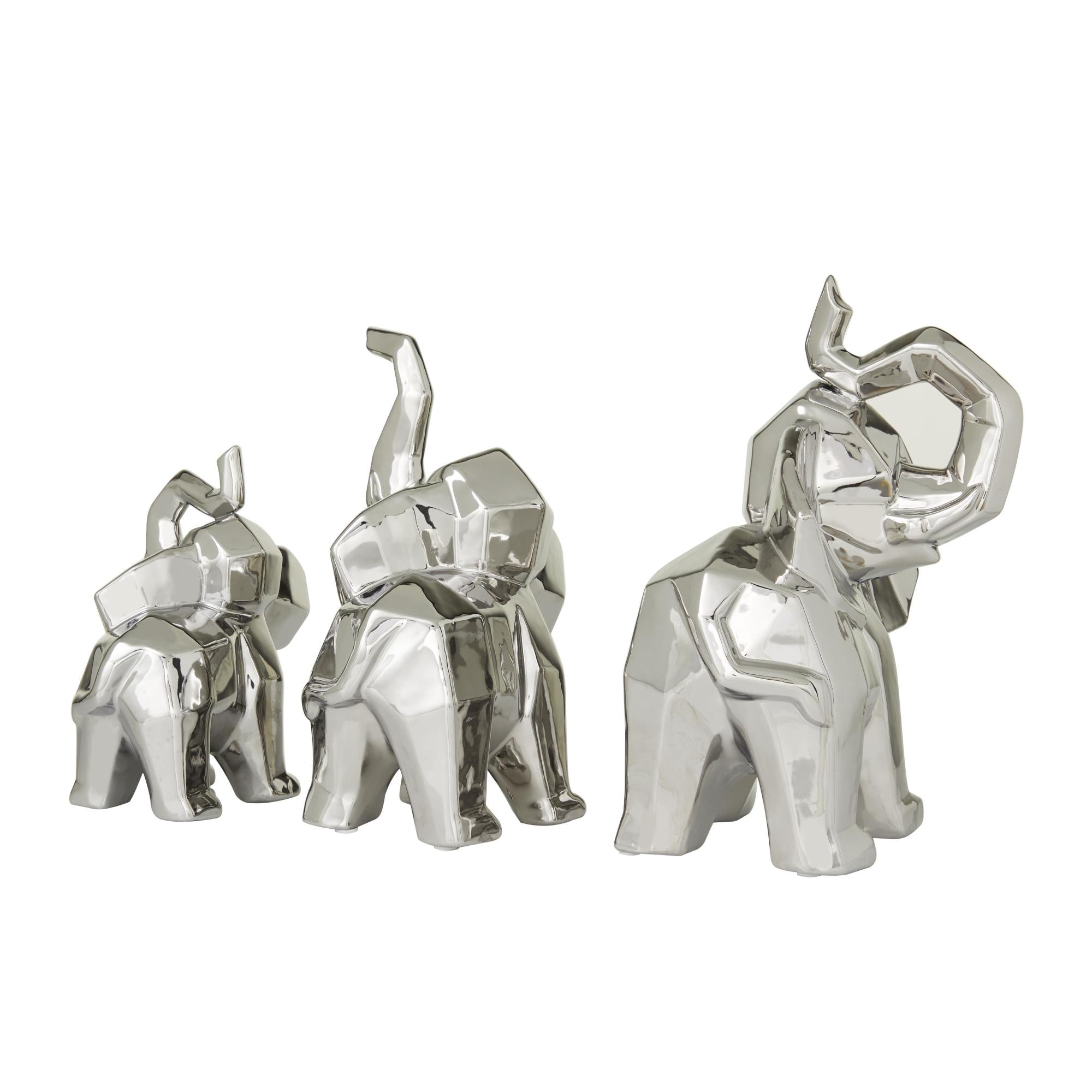 •In this glam set of 3 accent statues, porcelain is molded and skillfully sculpted into elephant figures and is applied with a polished finish