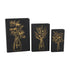 Set of 3 Floral Black Faux Leather Outline Faux Book Storage Decorative Box with Metallic Gold Accents
