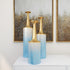 Set of 3 Floral Blue Metal Decorative Vase with Gold Top