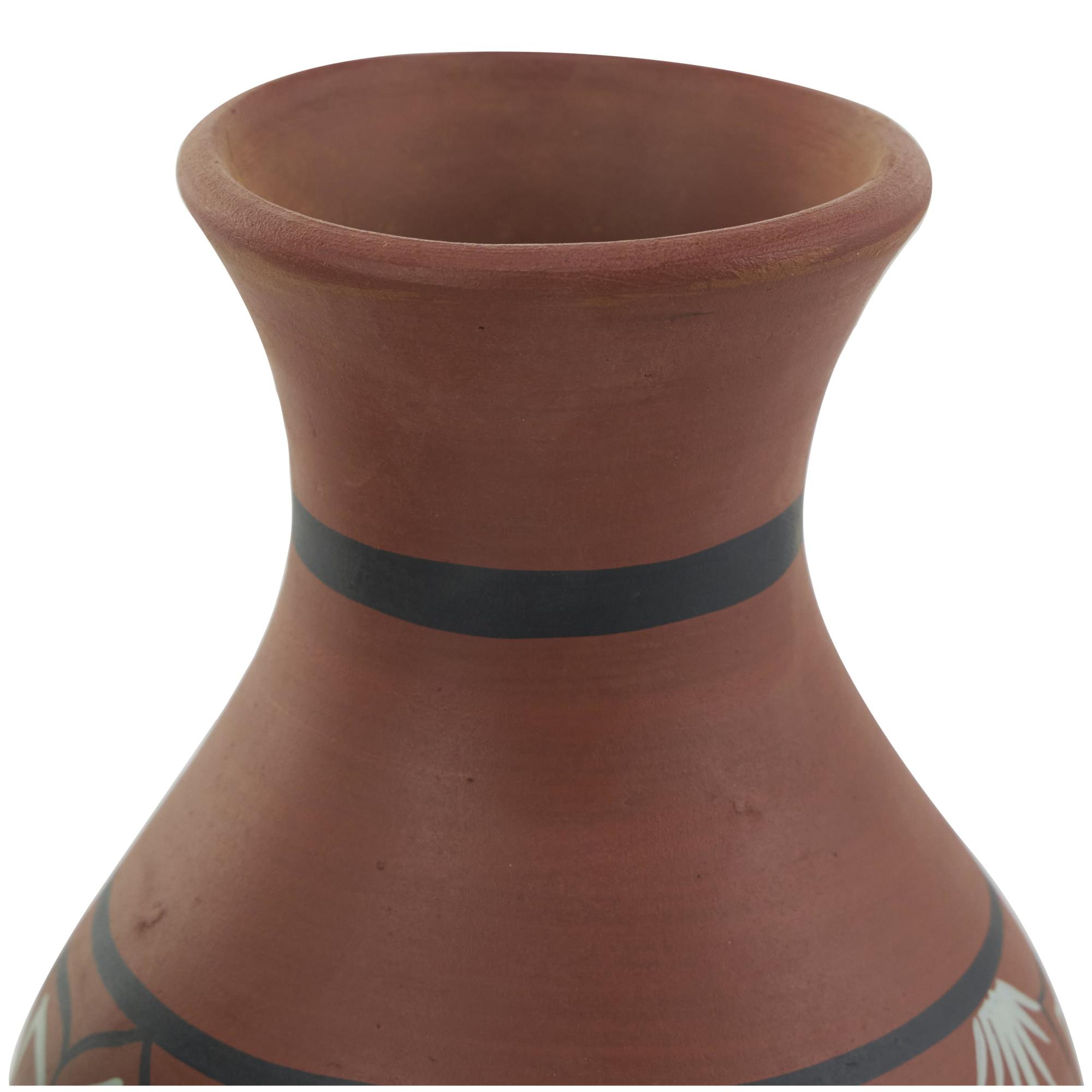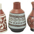 Style the floral set of 3 centerpiece vases together as a cluster on a dining table or separately in different areas of the home, enhancing visual appeal. Designed with felt or rubber stoppers at the base that prevent scratching furniture and table tops, as well as sliding around. This item ships in 1 carton. Suitable for indoor use only. This item ships fully assembled in one piece. Made in India. This ceramic vase comes as a set of 3. Tuscan style. Vases have 2 in, 1.80 in, and 1.20 in mouth openings.
