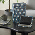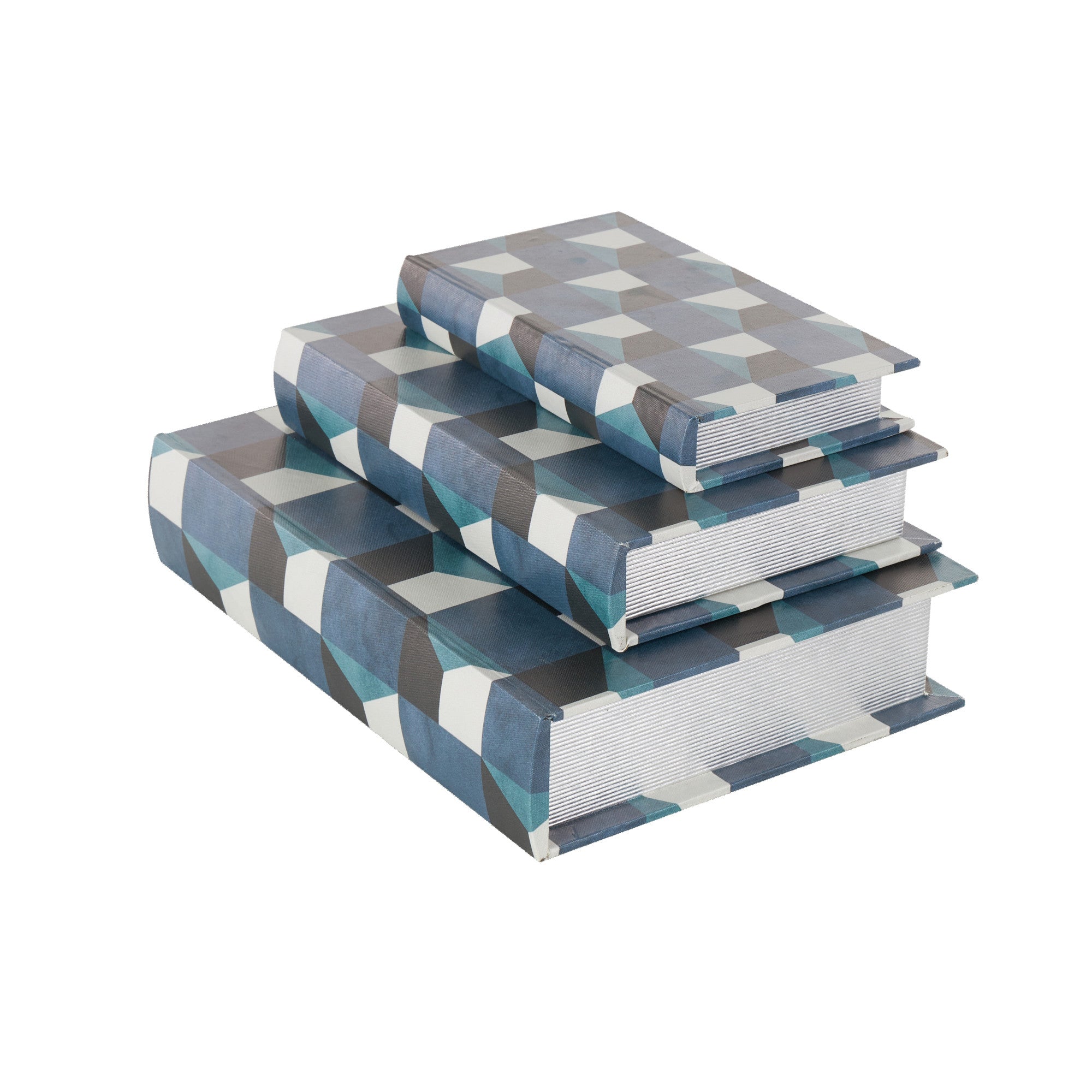 Set of 3 Geometric Blue Faux Leather Faux Book Storage Decorative Box with Black and White Accents