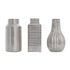 •This ceramic set of 3 vases boasts a unique geometric design with varying shapes and grid patterns