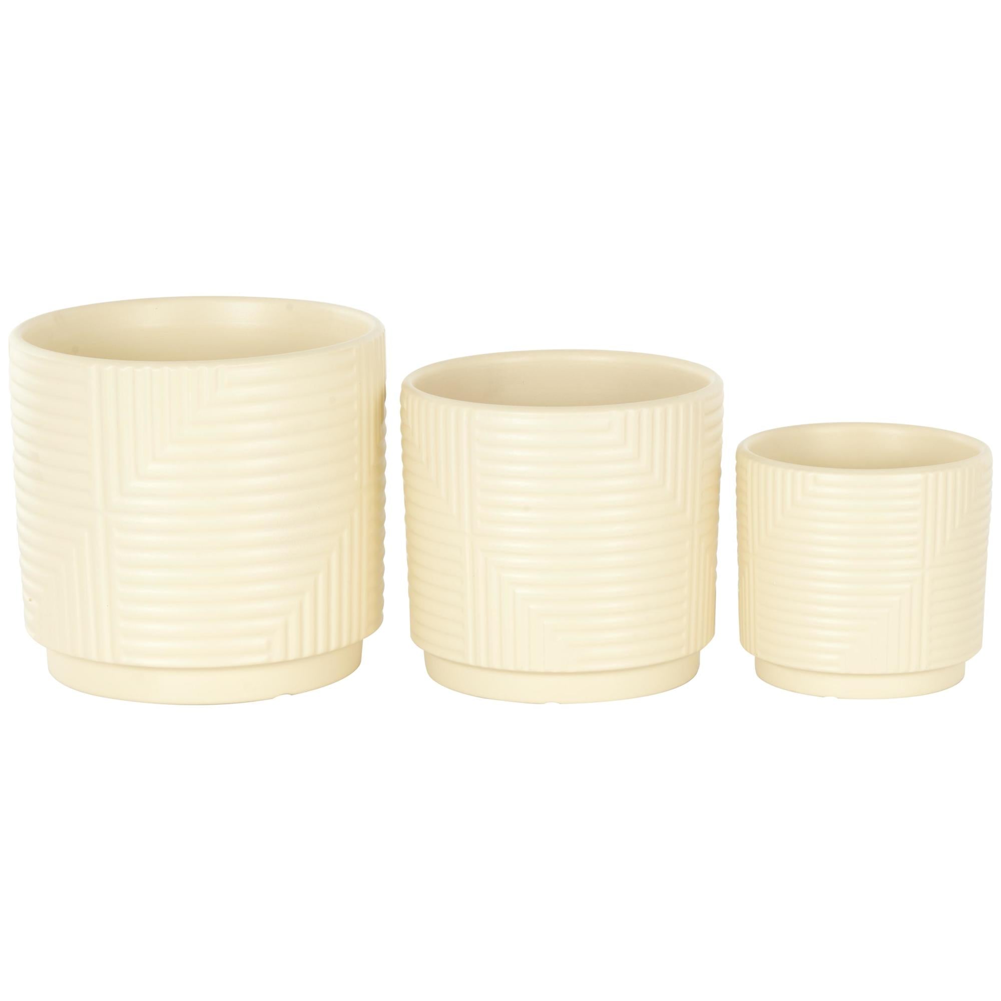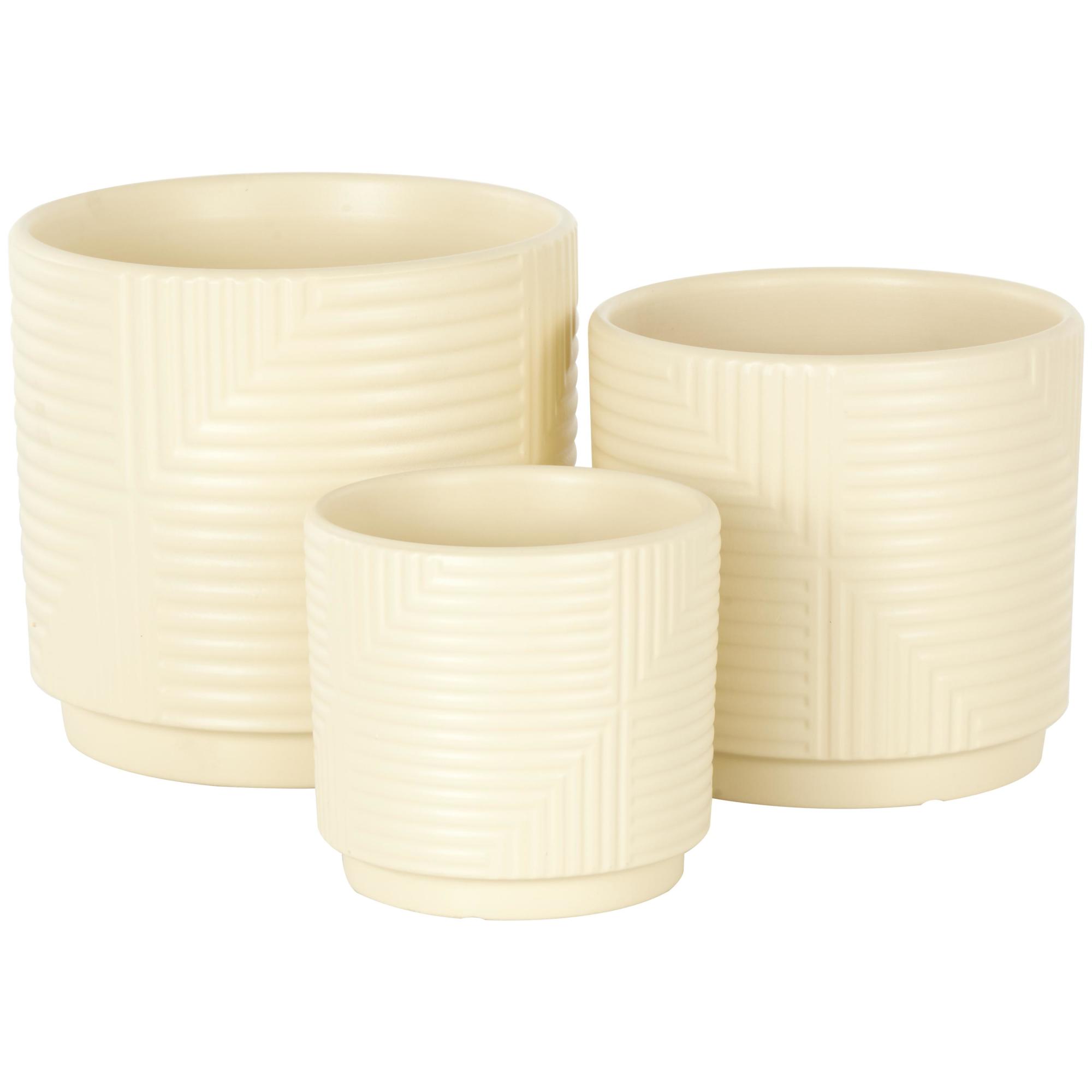 Set of 3 Geometric Ceramic Indoor Outdoor Planter with Layered Square Shaped Grooves