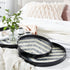 •These one-of-a-kind Capiz shell trays showcase a stunning chevron inner tray pattern and a matte wooden base with handles