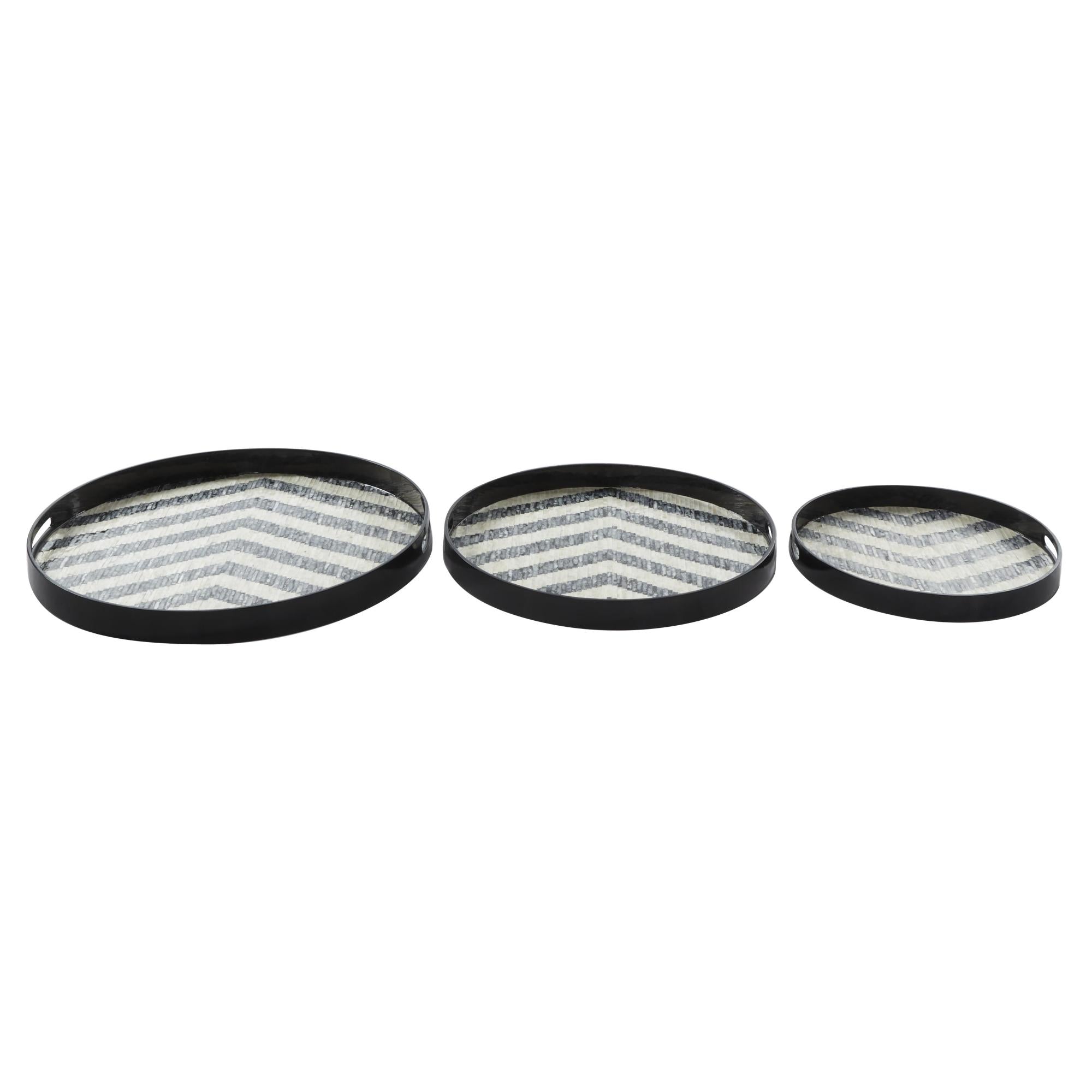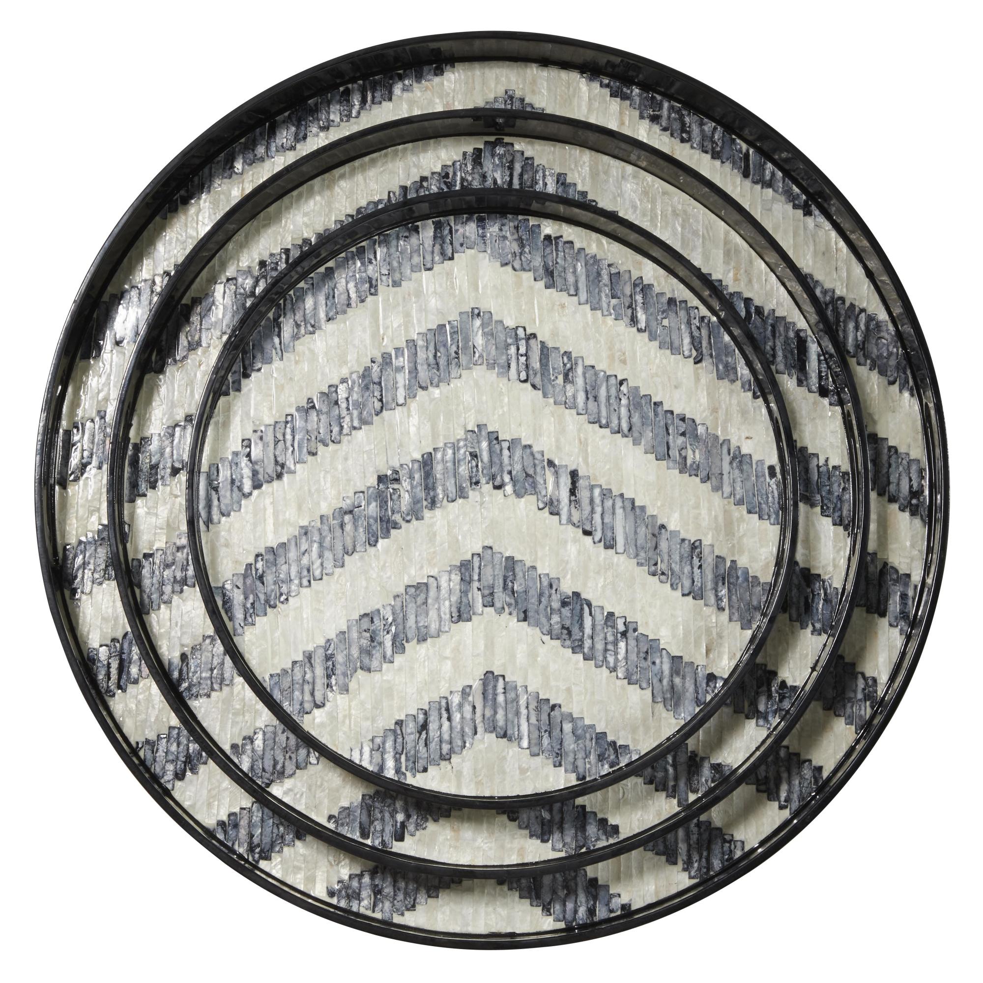 Set of 3 Mother of Pearl Shell Handmade Chevron Living Room Decor Tray with Slot Handles