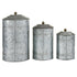 Set of 3 Gray Metal Galvanized Ribbed Living Room Decorative Jars with Gold Ball Knobs