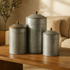 •Each piece in this farmhouse set of 3 decorative jars for the living room is carefully shaped and hammered from galvanized iron sheets, offering a unique touch to every item
