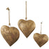 Set of 3 Heart Metal Tibetan Inspired Weathered Indoor Outdoor Decorative Bells with Jute Hanging Rope