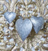 •These weathered decorative bells for holidays have a heart shape in various sizes with ring hangers and knotted rope