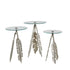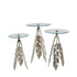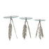 Set of 3 Leaf Aluminum Metal Side End Accent Table with Tripod Legs and Tempered Glass Top