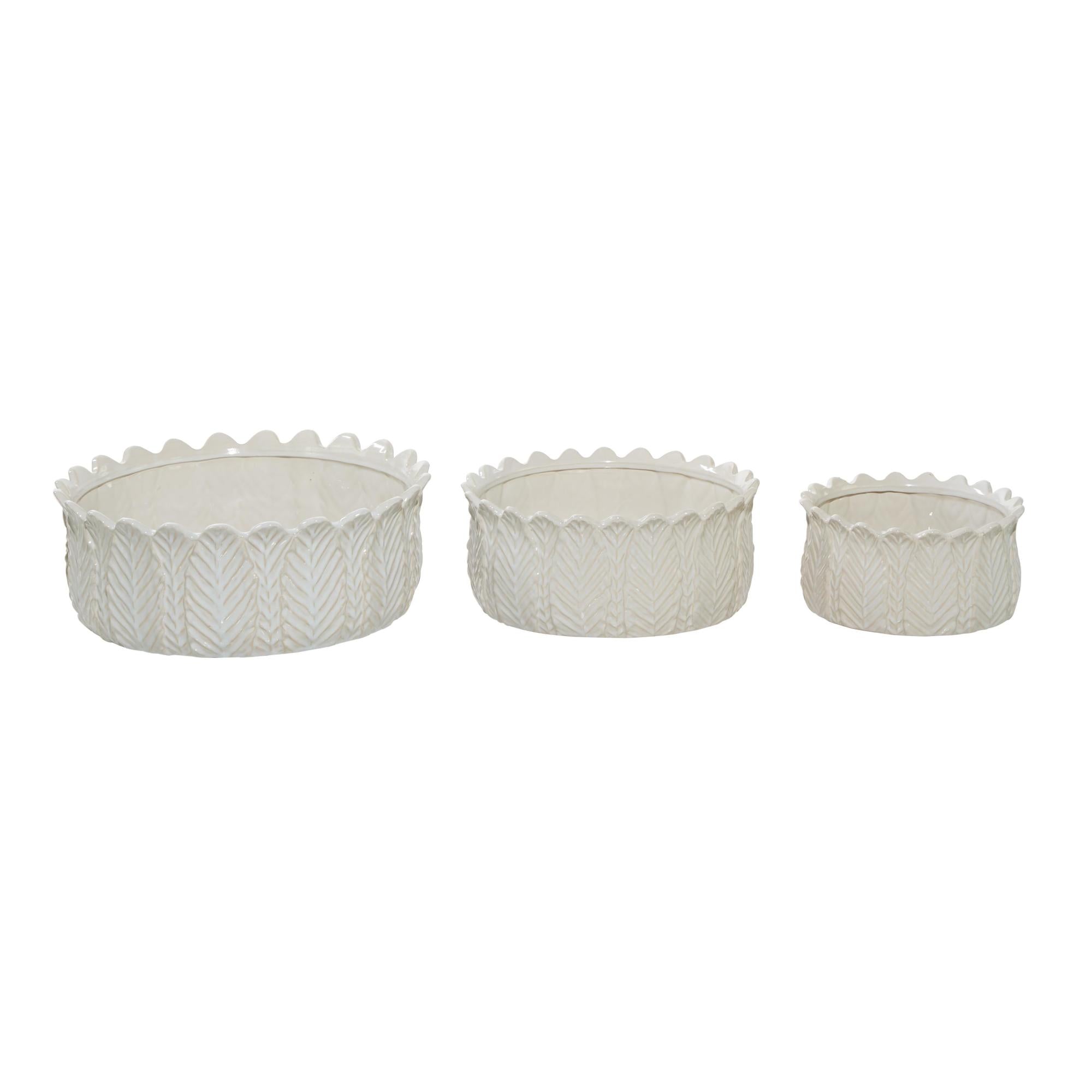 Set of 3 Leaf White Ceramic Indoor Outdoor Planter