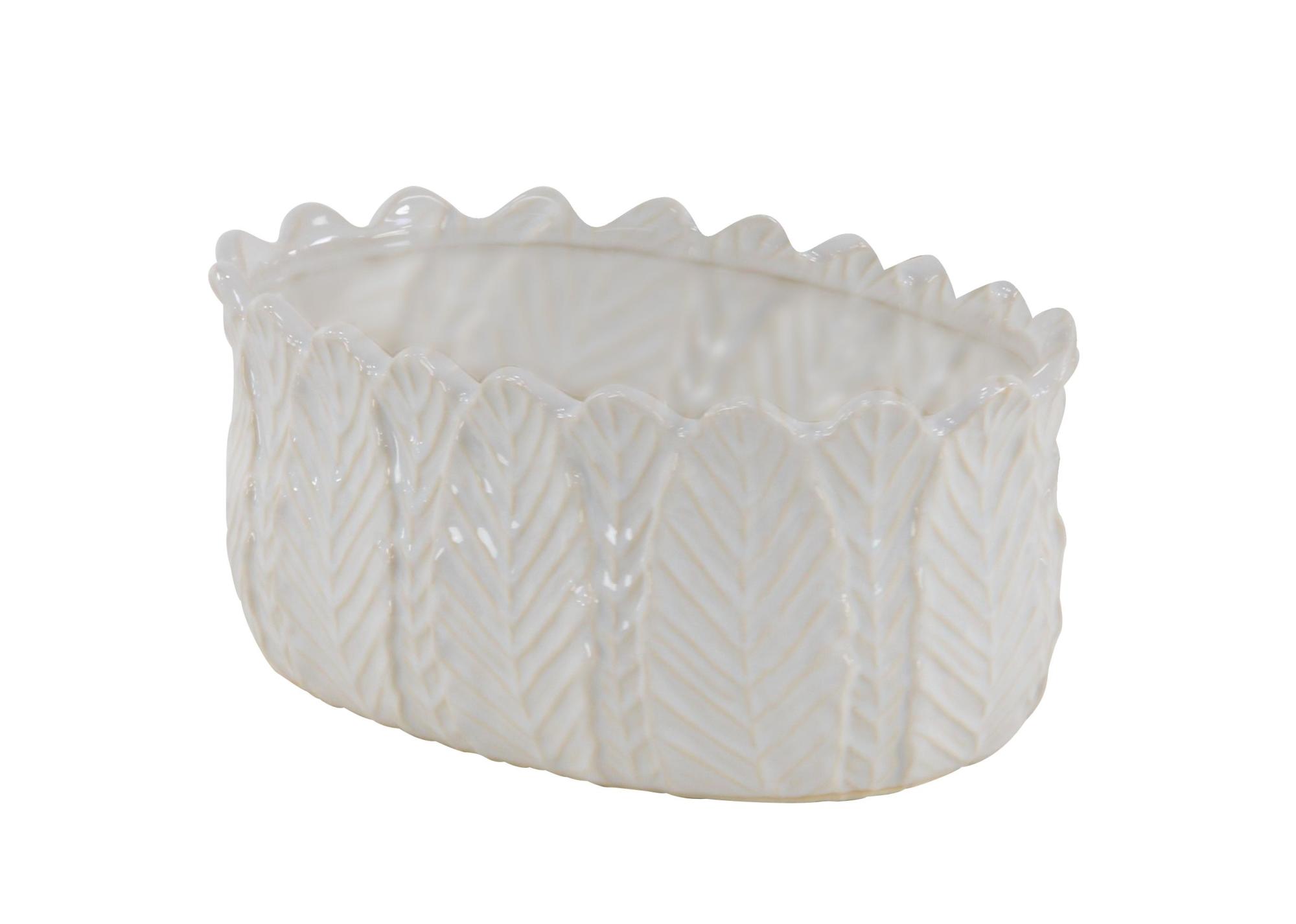 Set of 3 Leaf White Ceramic Indoor Outdoor Planter