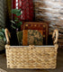 •This basket for home decor showcases rectangular shapes with tan braid patterns and arched handles
