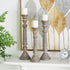 •Distressed candle holders for centerpiece features round plates, segmented bodies, and circular bases that enhance its unique charm
