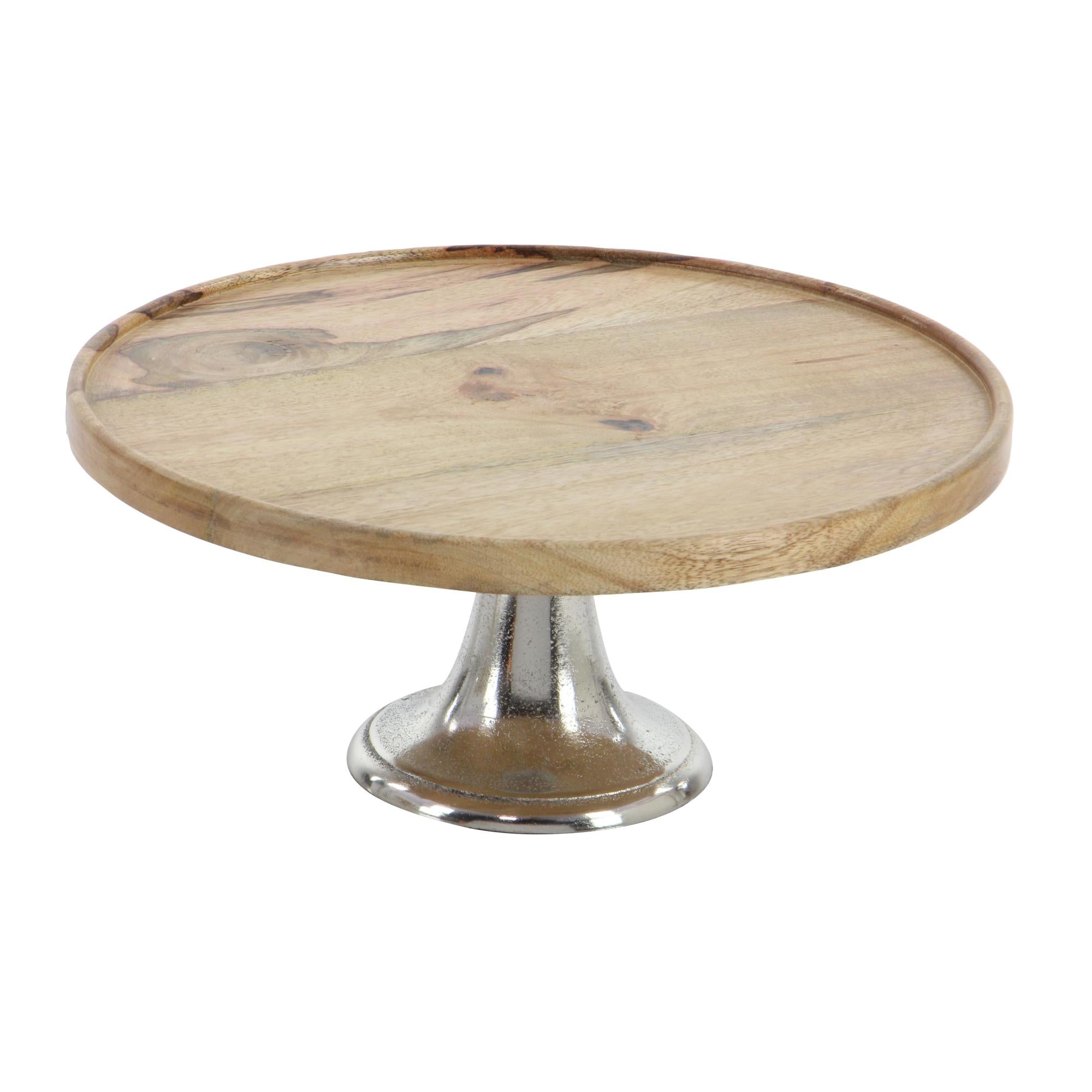 •The decorative cake stand set is crafted from aluminum and mango wood for a harmonious and sturdy design