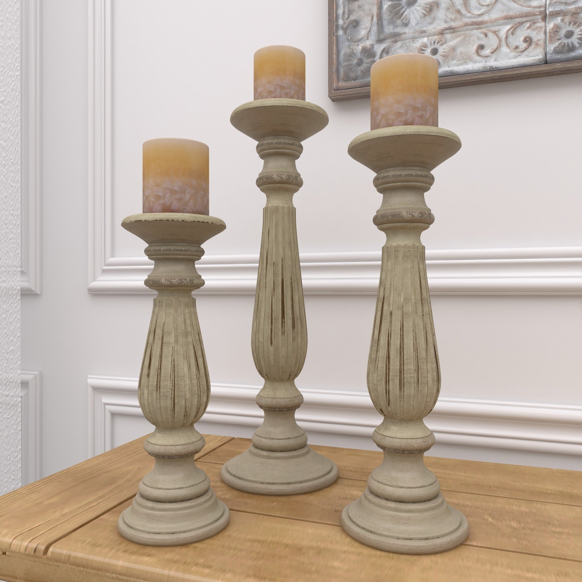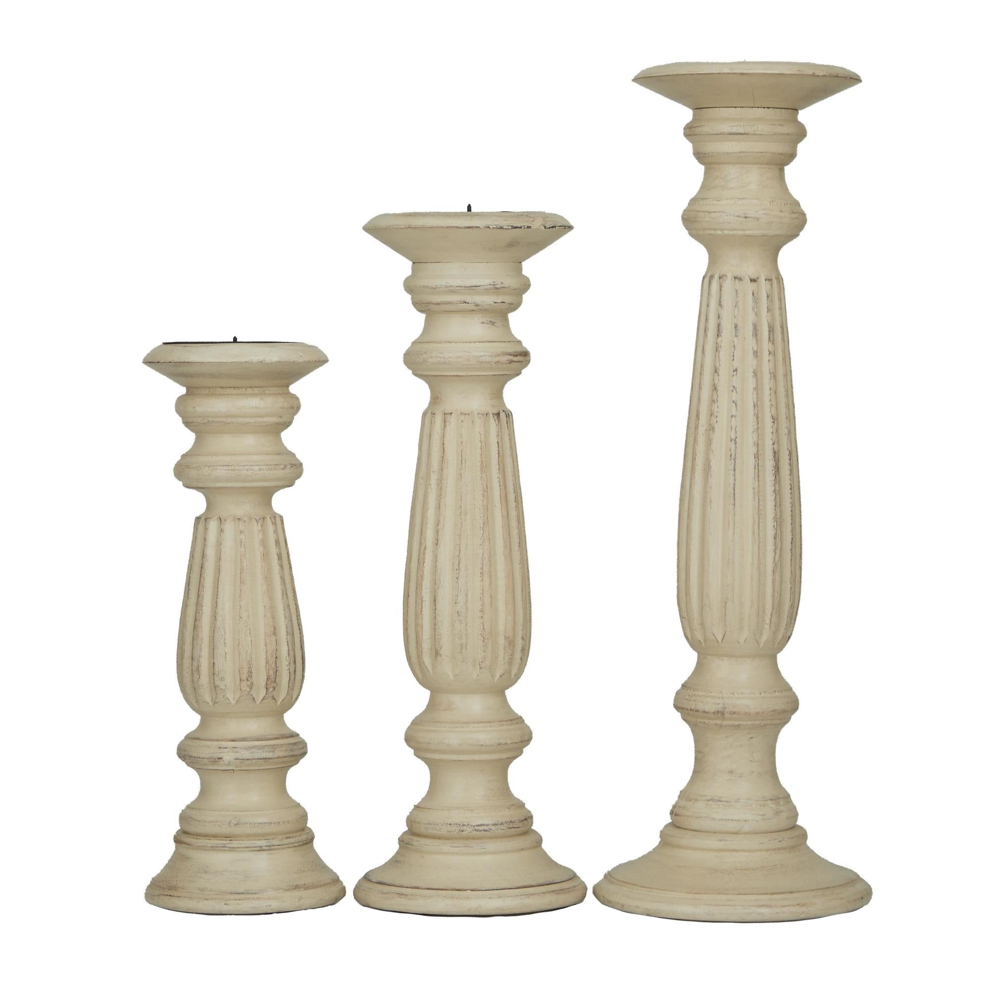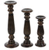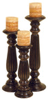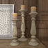 •Mango wood set of 3 candle holders features a textural curved design for easy grip and wide plates with spikes to secure candles firmly
