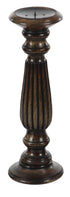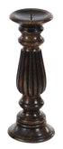 •Varnished candle holders for centerpiece showcases vertical grooves on its midsection, enhancing its elegant round plate and base design