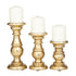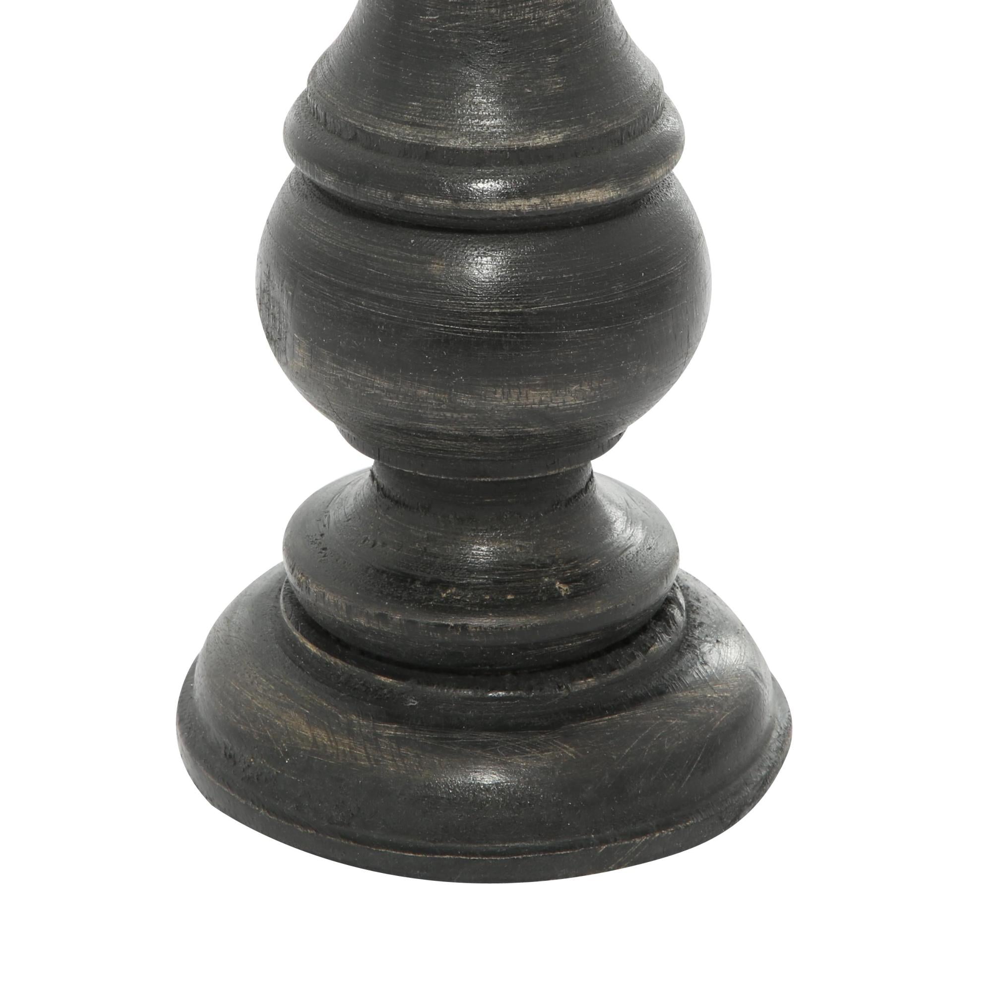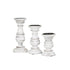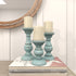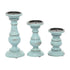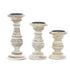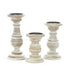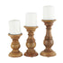 Set of 3 Mango Wood Distressed Turned Pillar Decorative Candle Holder