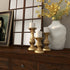 •Varnished candle holders for centerpiece features tall, curvy round shapes with wide bases and flat tops, adding a touch of sophistication to any space