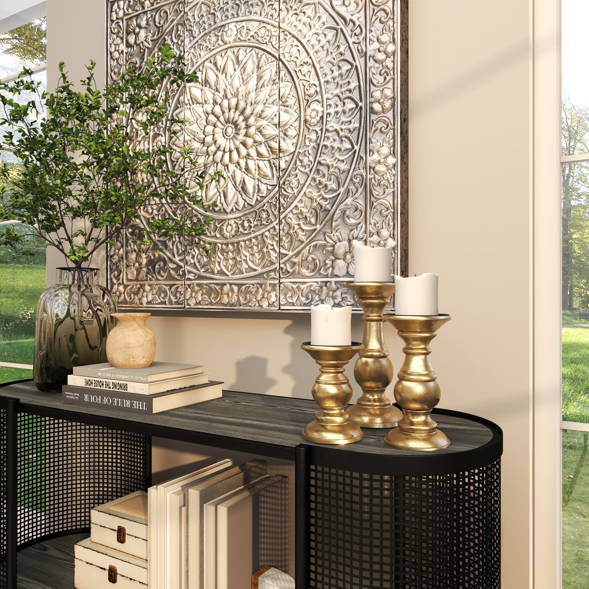 •Solid mango wood is meticulously carved and distressed to create this traditional set of 3 candle holders for home decor