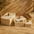 •Emphasizing their geometric appeal, these matte gift boxes feature a rectangular structure topped with matching lids and round handles